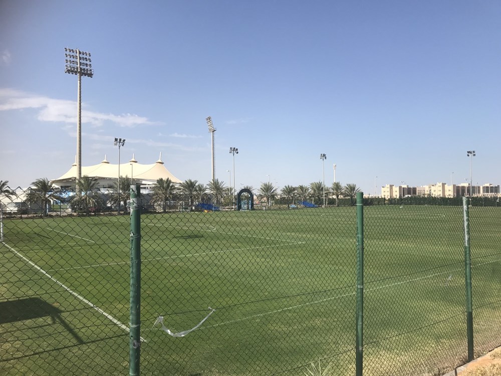 スタジアムに隣接された練習場は天然芝が7面の素晴らしい環境ですが、一本道を挟んだ向こうには何キロにも渡って砂漠が広がっていました。