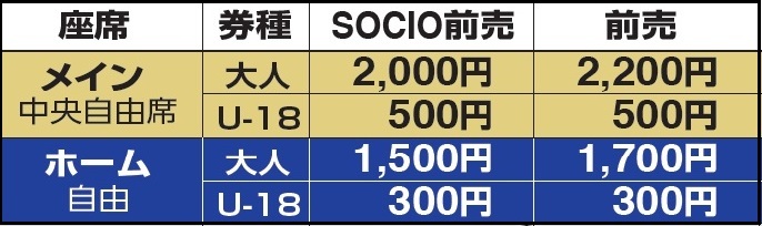 ※SOCIOのみなさまはSOCIOカードをご提示のうえ、上限4枚まで購入できます。SOCIOカード作成前の方は、券面に『SOCIO優先入場可』と記載の紙チケットをご提示ください。