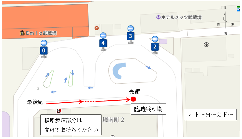 武蔵境駅南口ロータリー改修工事終了に伴い、武蔵境駅南口の味の素スタジアム直行便乗り場を変更いたします。