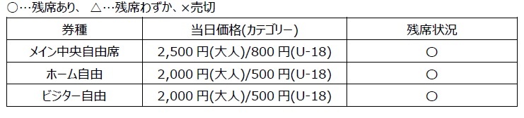 3/16(土)2019明治安田生命J3リーグ第2節vsいわてグルージャ盛岡(14:00キックオフ/味の素フィールド西が丘)の当日券販売につきまして、下記のとおりお知らせいたします。