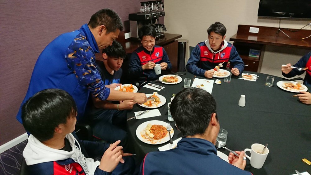 明日の最終戦に向けてしっかり食べるということで、バイキングで余っていた料理を中村監督自ら選手たちについで回る場面も。