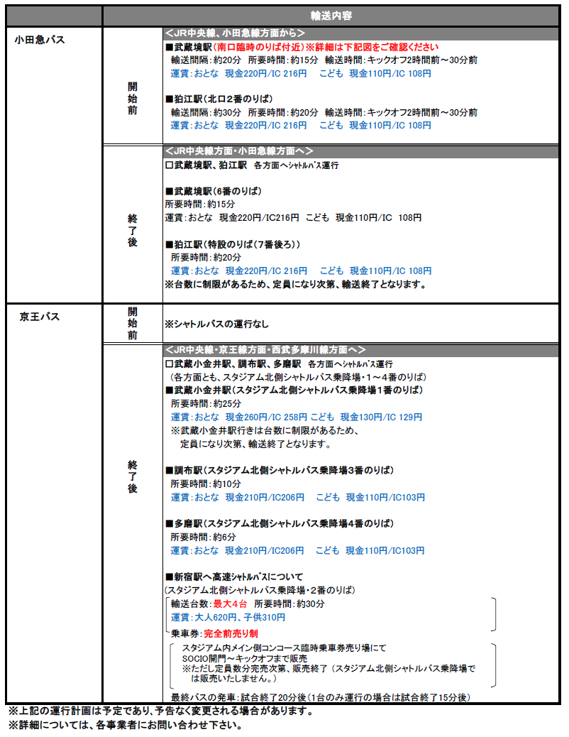 4/6(土)2019明治安田生命J1リーグ第6節vs清水エスパルス(14:00キックオフ/味の素スタジアム)にて運行されるシャトルバス・路線バスについてご案内いたします。