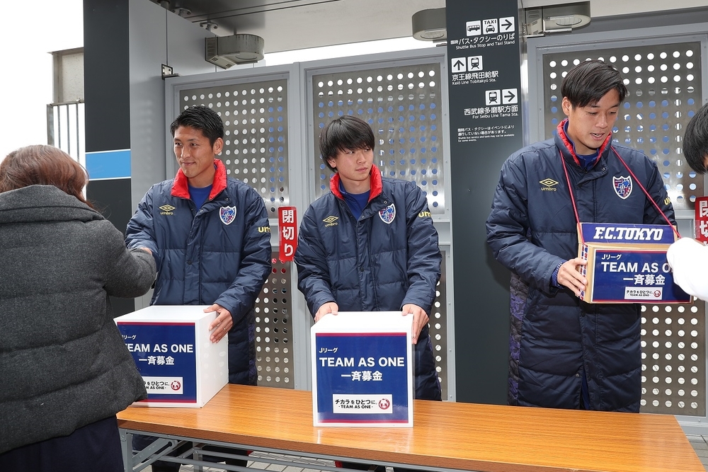 3月に行われたFC東京およびFC東京U-23のホームゲーム(リーグ戦4試合)において、東日本大震災および熊本地震災害、平成30年7月豪雨災害、北海道胆振東部地震の被災地復興支援として「Jリーグ TEAM AS ONE一斉募金」を実施いたしましたので、下記のとおりご報告いたします。ご協力いただきましたみなさまに心より感謝申し上げます。