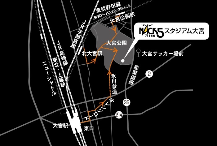 ・JR「大宮」駅東口より国際興行バス「導守循環」行で「大宮サッカー場前」下車徒歩約1分
