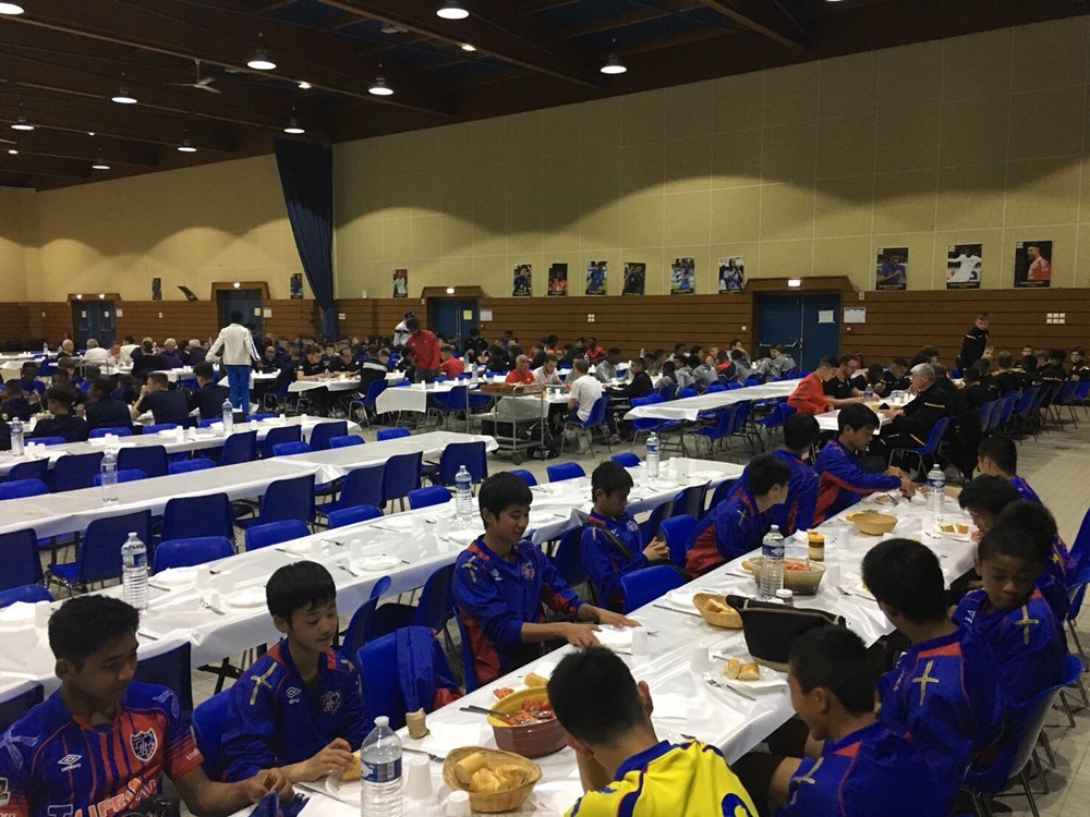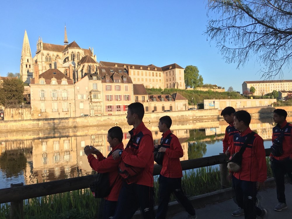 昼食も昨日と同じアカデミーの食堂で食べ、いよいよ大会の行われるサンスに向けてバスで出発しました。出発前には、トップチームが広島に勝利し首位に立ったことを聞き、メンバーの気持ちはより一層高まりました。