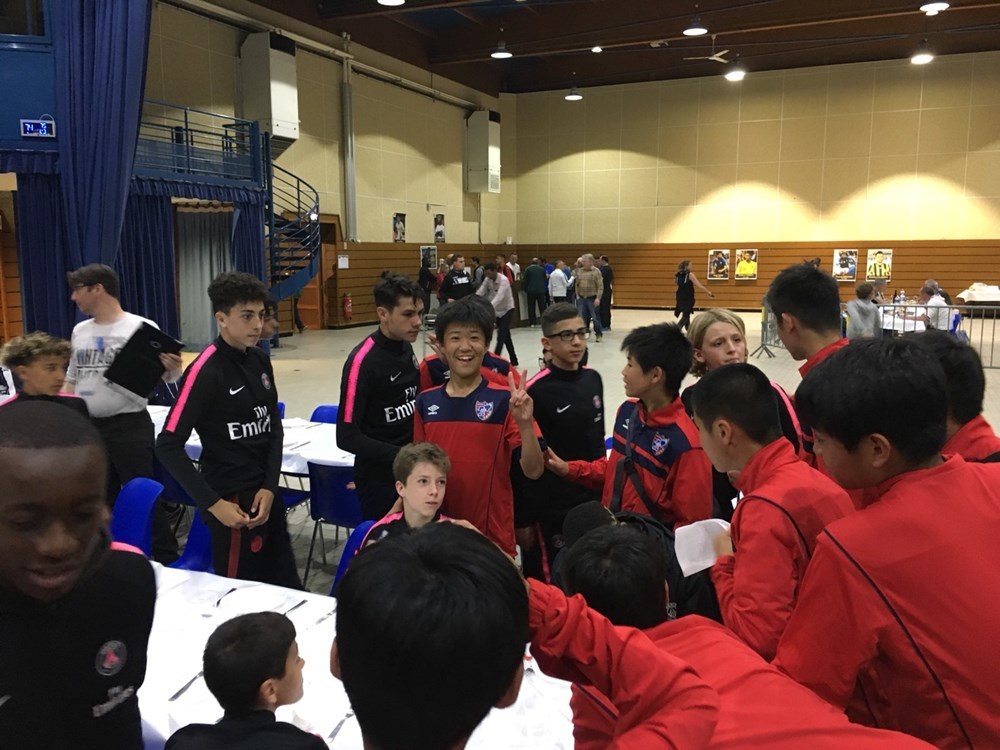 夕食時には他チームの選手との交流を行い、選手達は臆する事なく積極的に話しかけ、たくましさや成長を感じられました。