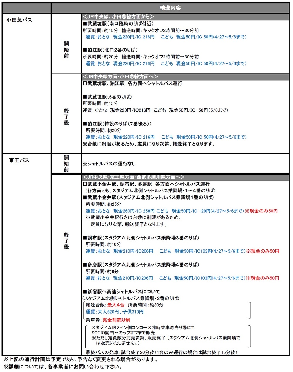 4/28(日)2019明治安田生命J1リーグ第9節vs松本山雅FC(14:00キックオフ/味の素スタジアム)にて運行されるシャトルバス・路線バスについてご案内いたします。