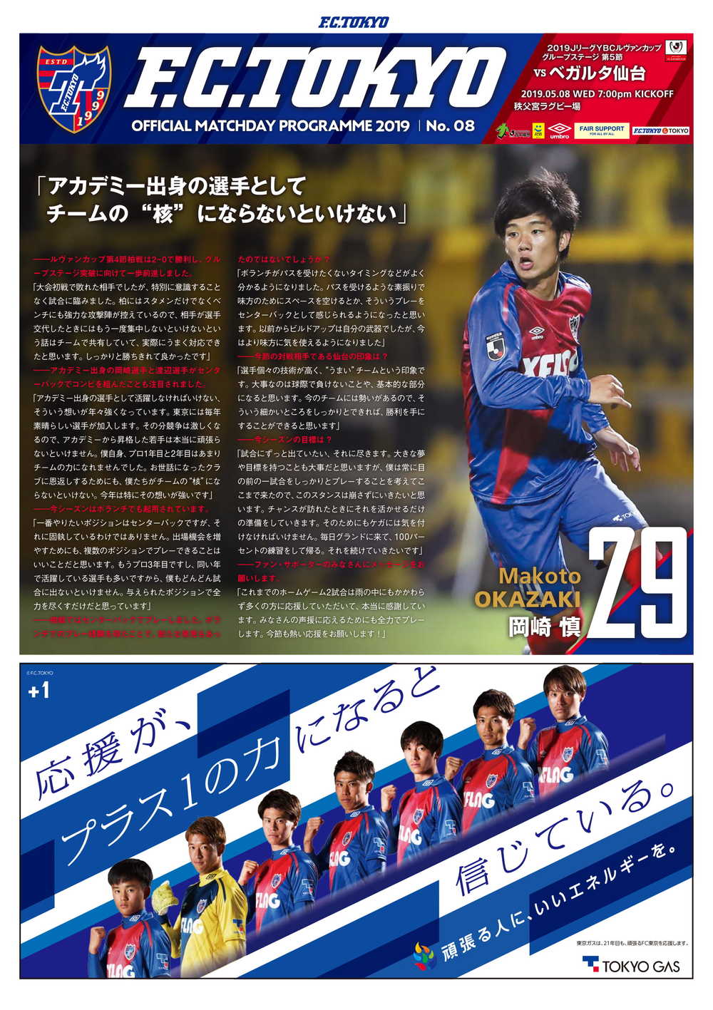□オフィシャルマッチデープログラム2019 No.8(表紙:岡崎慎選手)