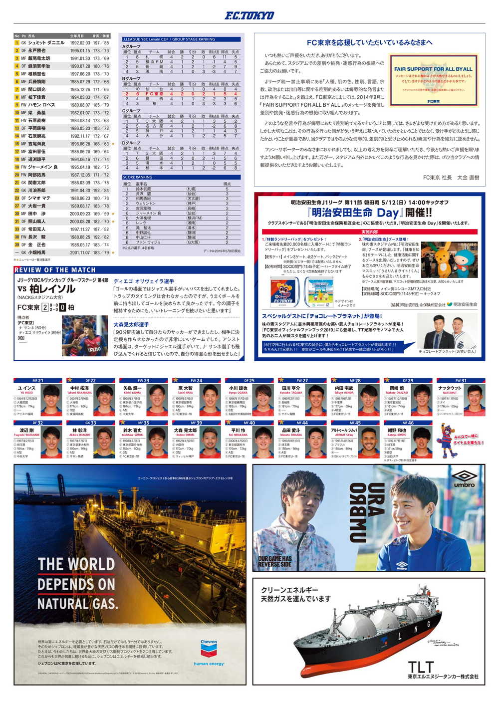 5/8(水)2019Jリーグ YBCルヴァンカップ グループステージ第5節 vs ベガルタ仙台(19:00キックオフ/秩父宮ラグビー場)のオフィシャルマッチデープログラムについて、下記のとおりご案内いたします。