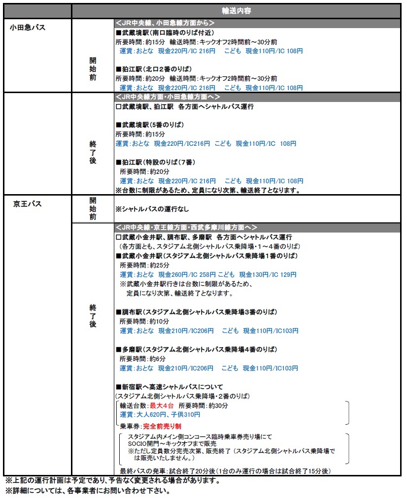 5/12(日)2019明治安田生命J1リーグ第11節vsジュビロ磐田(14:00キックオフ/味の素スタジアム)にて運行されるシャトルバス・路線バスについてご案内いたします。