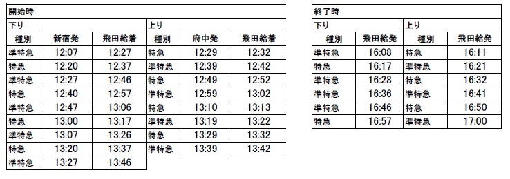下り…飛田給発16:08~16:57の特急・準特急/計6本