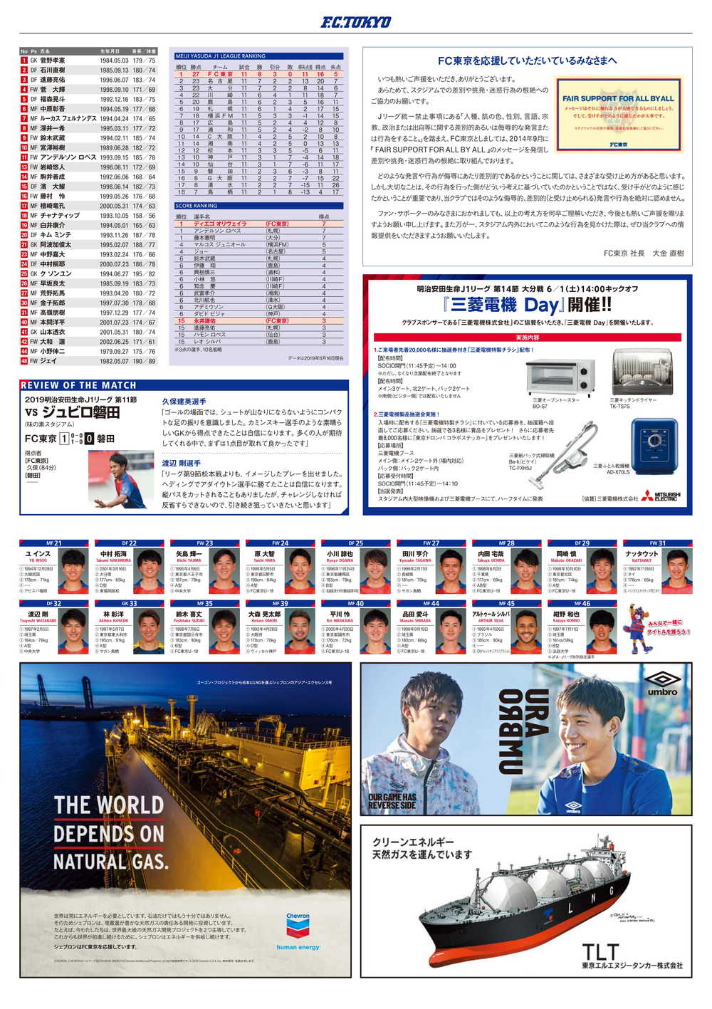 ※スタジアムにて配布するオフィシャルマッチーデープログラムの数には限りがございます。無くなり次第、配布は終了となりますので、あらかじめご了承ください。