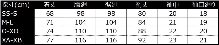 SS-S/M-L/O-XO/XA-XB