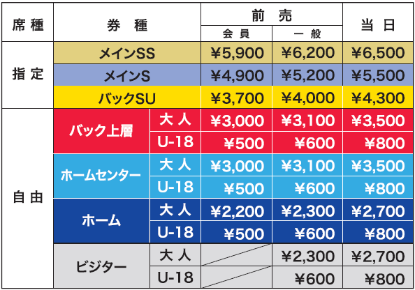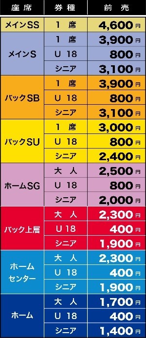 ※ペアシート、ホームSG指定席は「指定席同席販売」のみとなります。
