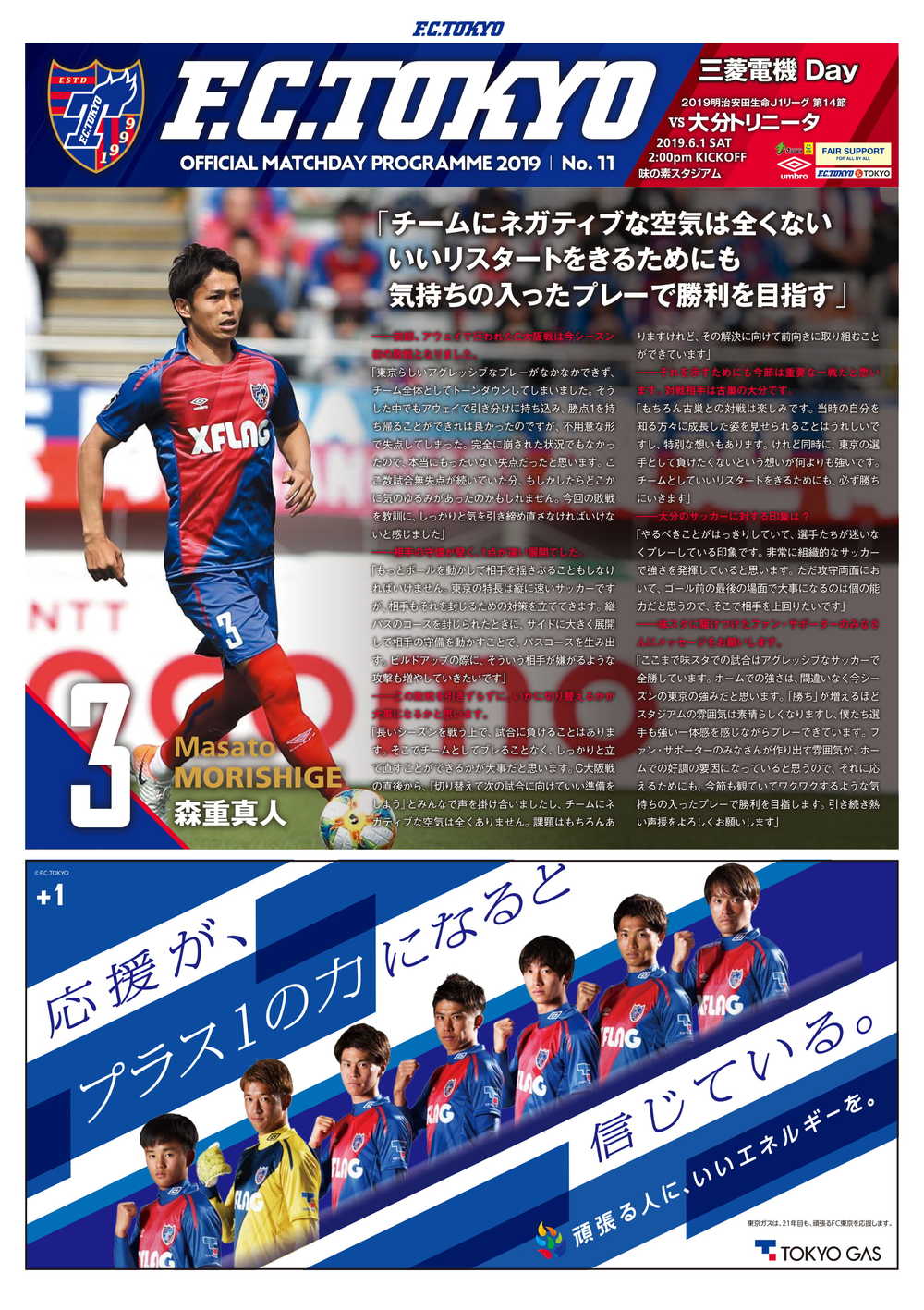 □オフィシャルマッチデープログラム2019 No.11(表紙:森重真人選手)