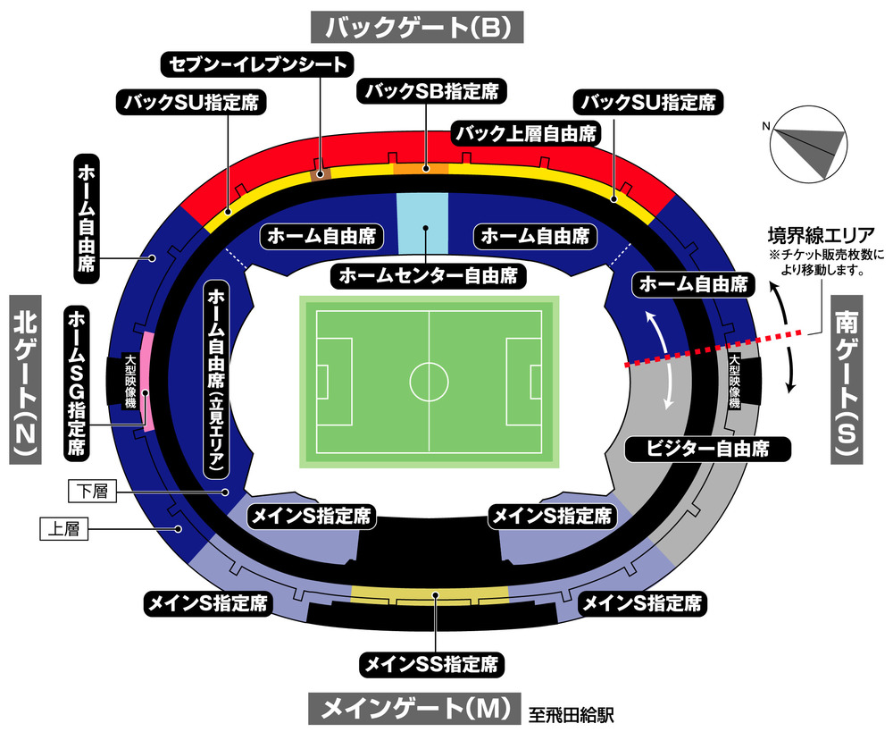 ※FC東京応援エリア(各指定席ホーム側、バック上層自由席ホーム側、ホームセンター自由席、ホーム自由席)内でビジターチームの応援は一切できません。