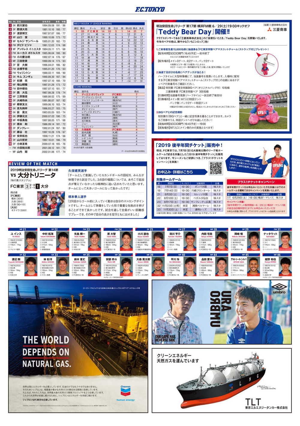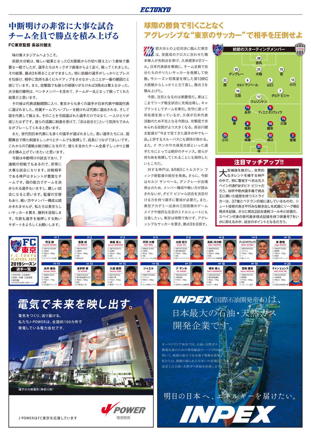 6/15(土)2019明治安田生命J1リーグ 第15節 vs ヴィッセル神戸(19:00キックオフ/味の素スタジアム)のオフィシャルマッチデープログラムについて、下記のとおりご案内いたします。