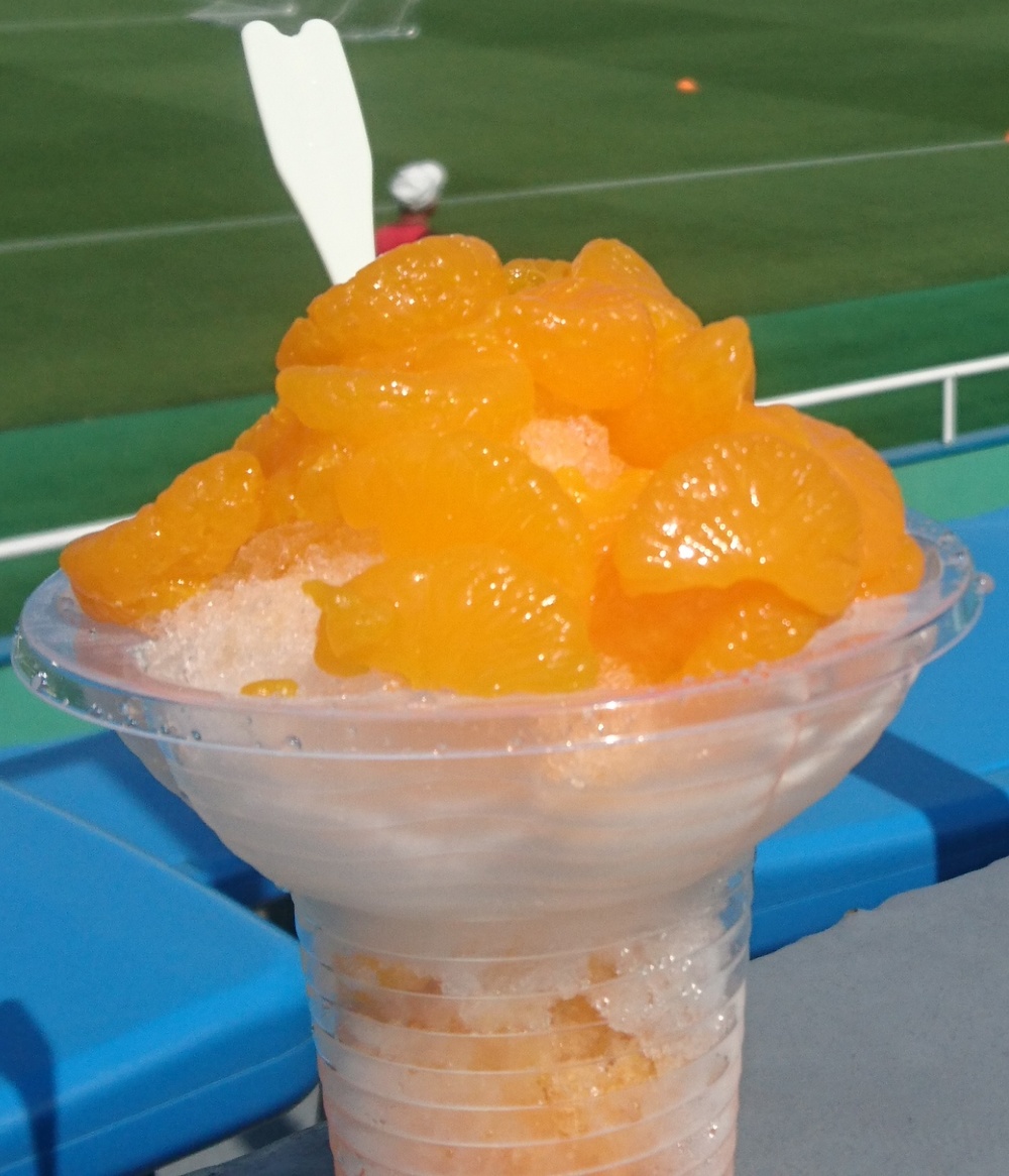 「みかんをたくさん使った夏にぴったりのかき氷です!!」