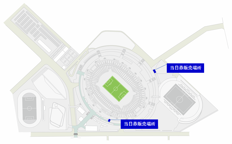 味の素スタジアム当日券売場2か所(メイン5ゲート外/バック2ゲート外)