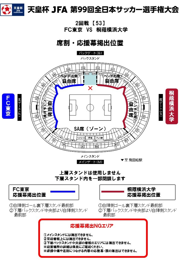 天皇杯 JFA 第99回全日本サッカー選手権大会2回戦 FC東京vs桐蔭横浜大学の試合運営を行う東京都サッカー協会より、下記のとおり試合当日の開門時刻、使用スタンド、応援幕、観戦ルール等について案内がありましたので、お知らせいたします。