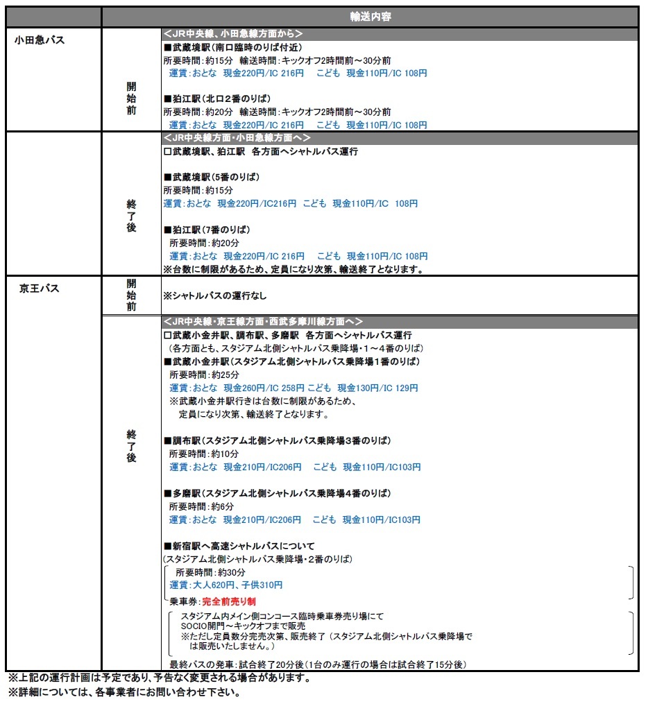 6/29(土)2019明治安田生命J1リーグ第17節vs横浜F・マリノス(19:00キックオフ/味の素スタジアム)にて運行されるシャトルバス・路線バスについてご案内いたします。