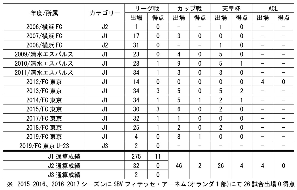 ※日本代表として国際Aマッチ出場7試合0得点 (2019年7月2日時点)