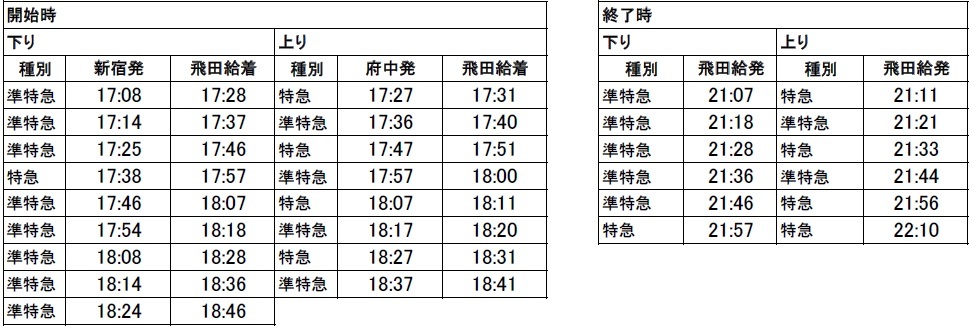 下り…飛田給発21:07~21:57の特急・準特急/計6本