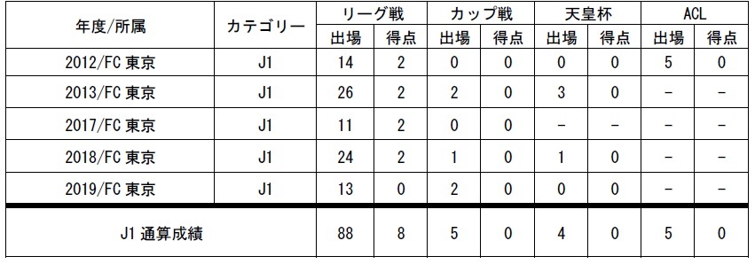 □出場記録(2019年7月13日現在/国内クラブ所属時のみ)