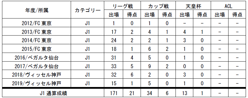 ※ 2012年 JFA・Jリーグ特別指定選手(FC東京)