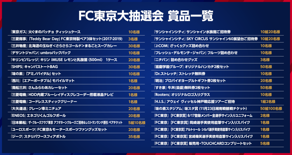 【8/15(木)追記】FC東京大抽選会の景品を追記しました。ぜひ奮ってご参加ください!