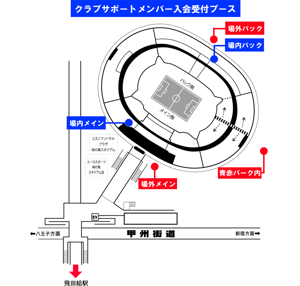 □入会受付および〈F.C.TOKYO×XFLAG〉オリジナル缶バッジ お渡し場所