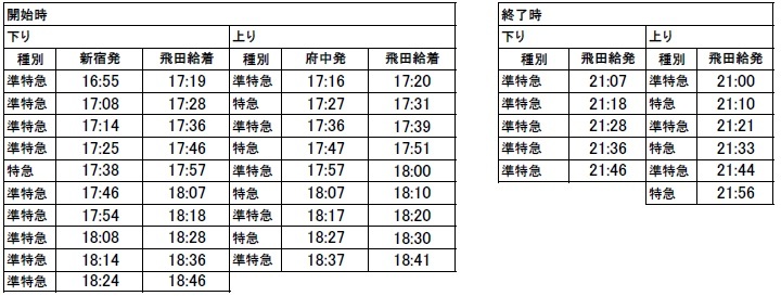 下り…飛田給発21:07~21:46の特急・準特急/計5本