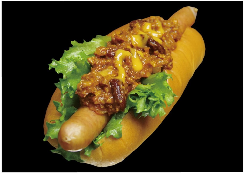 「自家製チリコンカルネをかけた、店主自慢の特製ホットドック!ソーセージもとてもジューシー!」