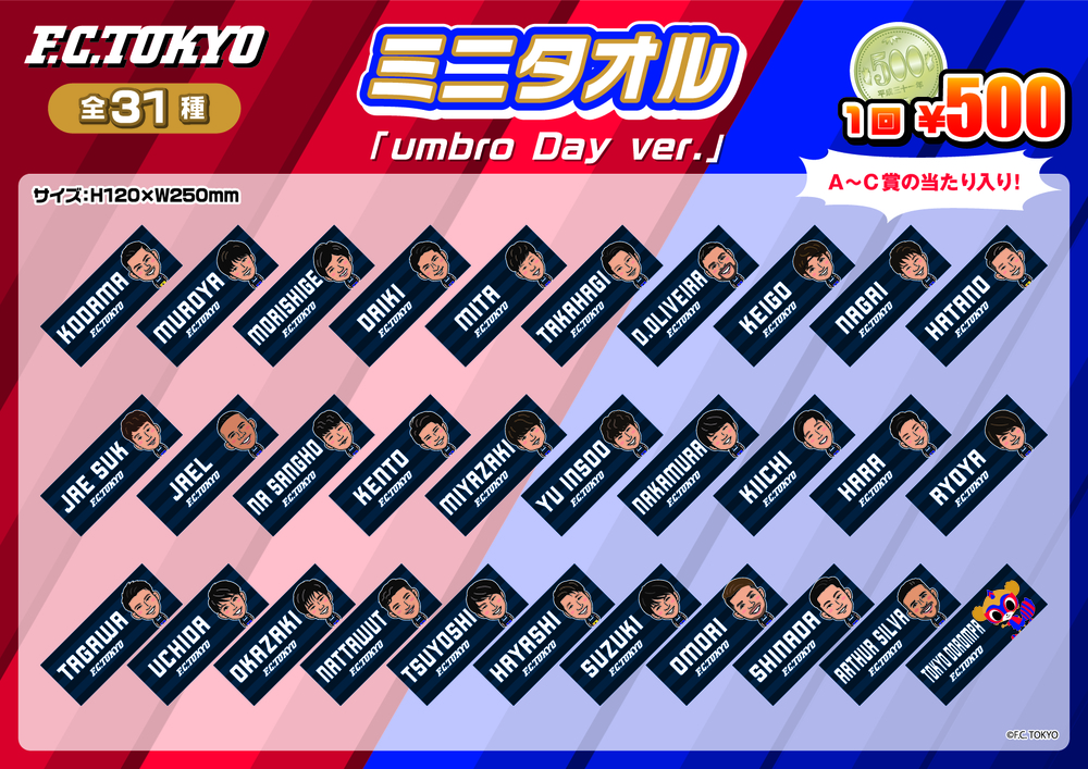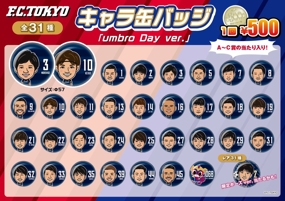 大人気のガチャガチャコーナーに、当日選手たちが着用する『umbro Day』限定試合前練習着をモチーフにしたキーホルダーや缶バッジが登場!さらに「当たりガチャ」が出たら豪華景品をプレゼント!ぜひお買い求めください!