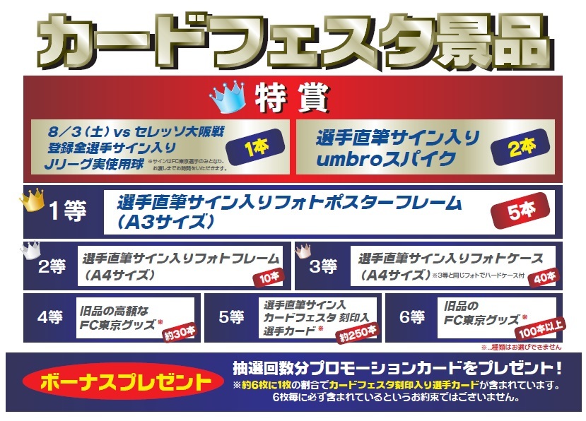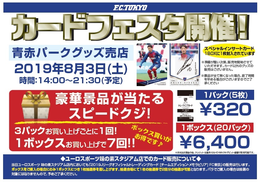 8/3(土)2019明治安田生命J1リーグ第21節vsセレッソ大阪戦(19:00キックオフ/味の素スタジアム)の「青赤パーク supported by XFLAG」で開催するグッズ売店にて、恒例の『カードフェスタ』を開催いたします!抽選で選手サイン入り試合球やフォトフレームが当たるチャンスです!