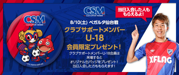 また、当日ご来場いただいたクラブサポートメンバーU-18会員の方先着1,500名様に、仙台戦限定オリジナル缶バッジをプレゼントいたします。当日ご入会された方も対象となりますので、ぜひこの機会にご入会ください!