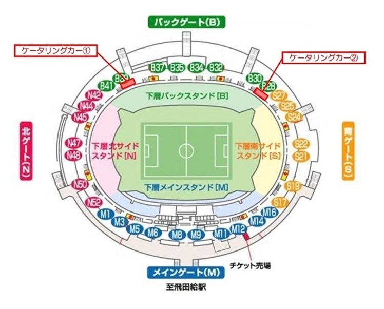 ・「フードコーナー」はスタジアム場外にあります。入場後は「北1ゲート」をご利用ください。