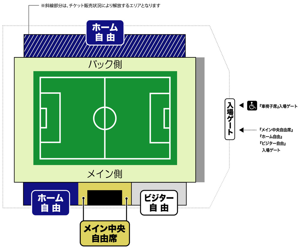 ◇入場ゲート(メイン中央自由席・ホーム自由・ビジター自由)