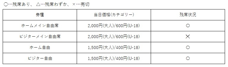 ※ホームメイン自由席は予定枚数に達し次第、予告なく当日券販売を終了する場合がございますので、あらかじめご了承ください。