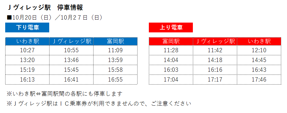 お帰りの際には運行しませんので、Jヴィレッジ駅をご利用ください。