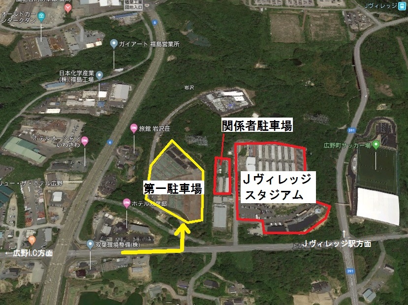 ※Jヴィレッジスタジアム内の駐車場は関係者駐車場となります。観戦の方は第一駐車場をご利用ください。