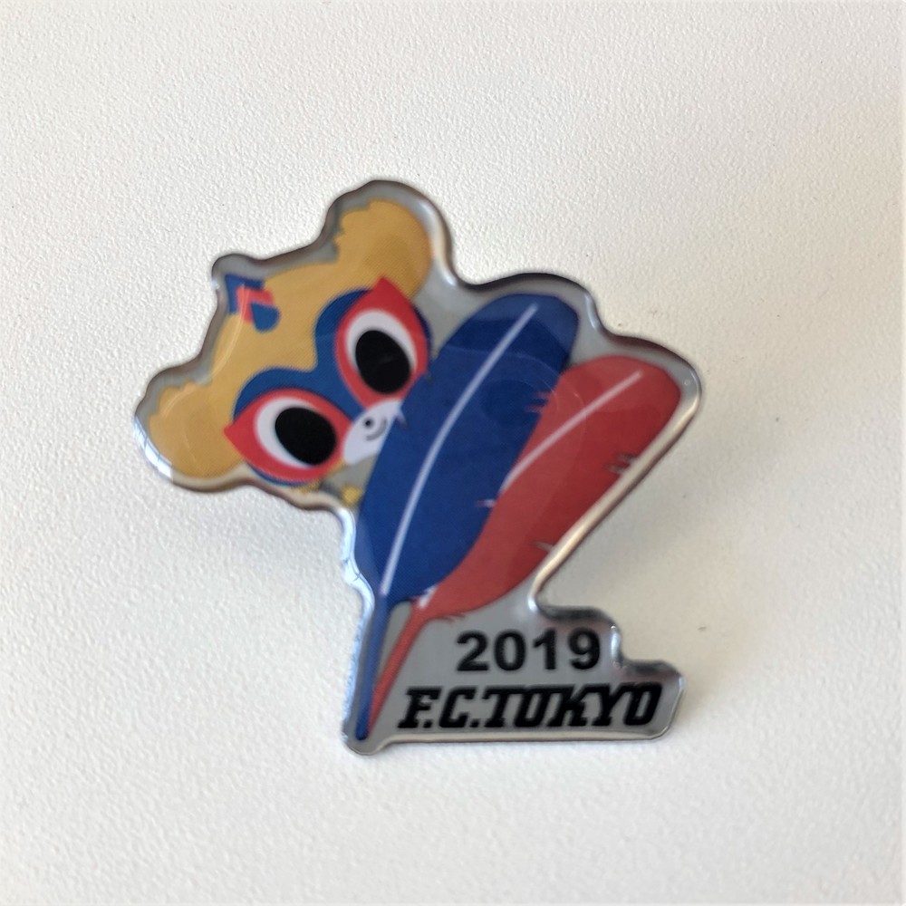 東京ドロンパと青赤の羽根がデザインされたオリジナルピンバッジを販売いたします。ピンバッジの売り上げから製作費等を除いた全額を、赤い羽根共同募金へ寄付いたします。