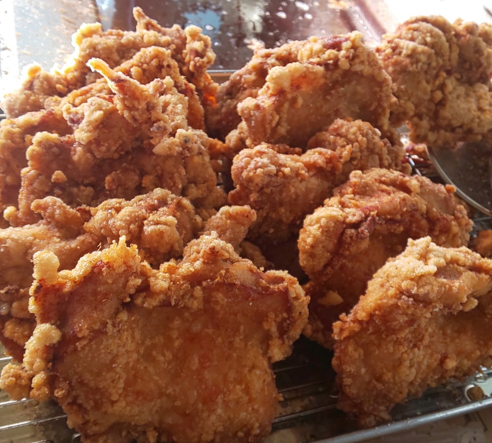 デカい!大人気!手のひらサイズの唐揚げ!数種類のスパイスを程よくブレンドしてサックリ揚げました!ビールと一緒にどうぞ~!