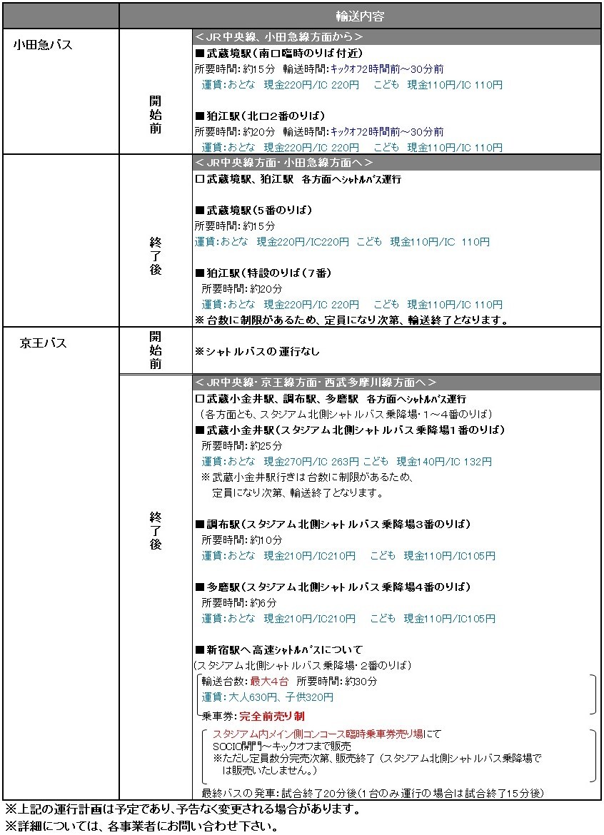 11/23(土祝)2019明治安田生命J1リーグ第32節 vs湘南ベルマーレ(14:00キックオフ/味の素スタジアム)にて運行されるシャトルバス・路線バスについてご案内いたします。