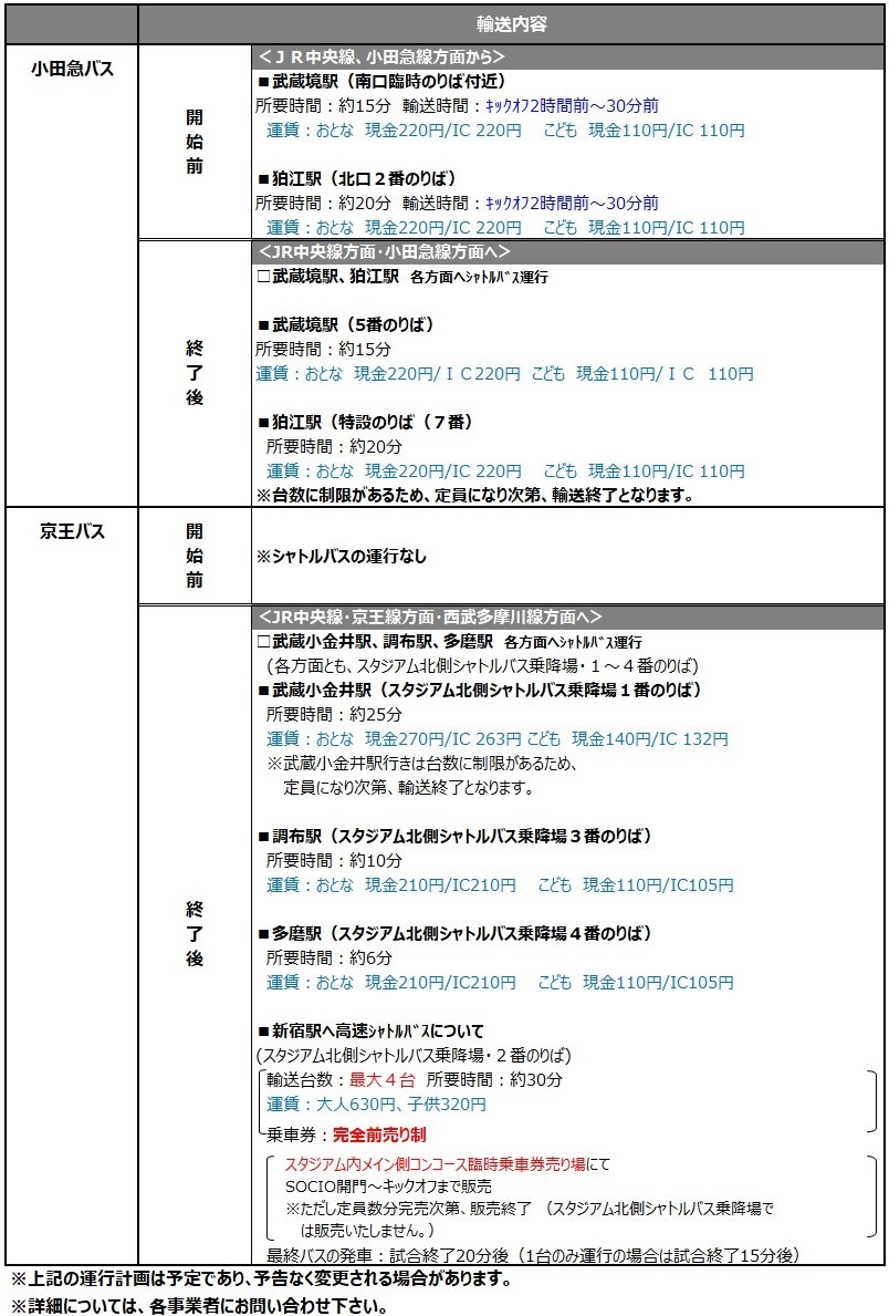 11/30(土)2019明治安田生命J1リーグ第33節 vs浦和レッズ(14:00キックオフ/味の素スタジアム)にて運行されるシャトルバス・路線バスについてご案内いたします。