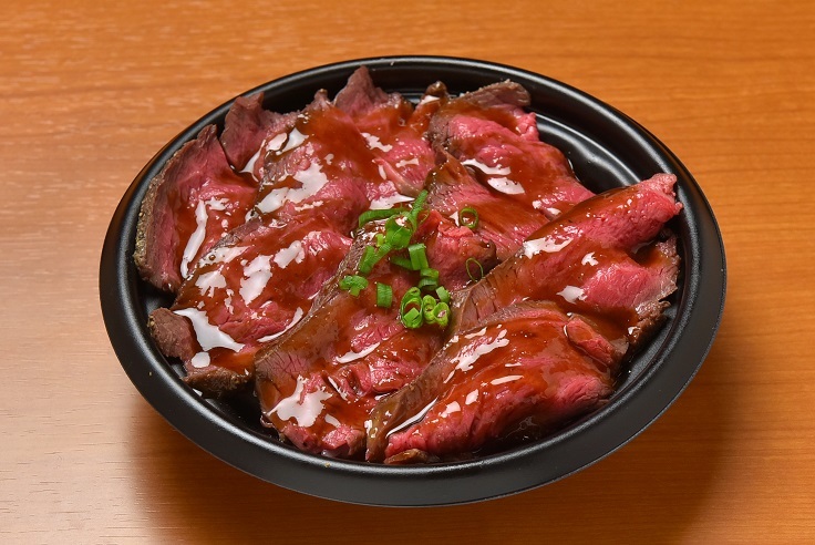 肉の専門店が作る当店一番人気のグルメです。柔らかく味わい深いローストビーフににんにく醤油ダレが美味しさを引き立てます。