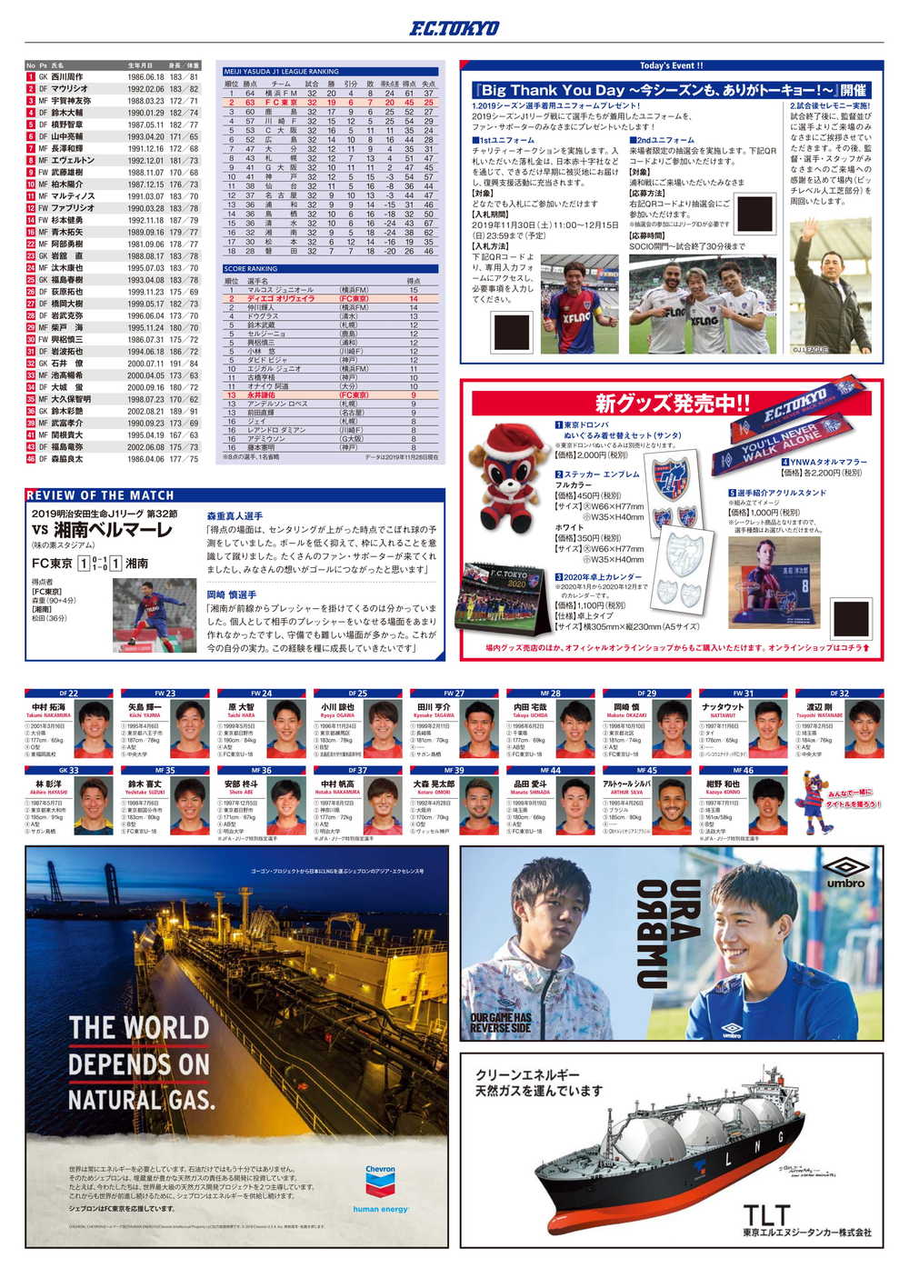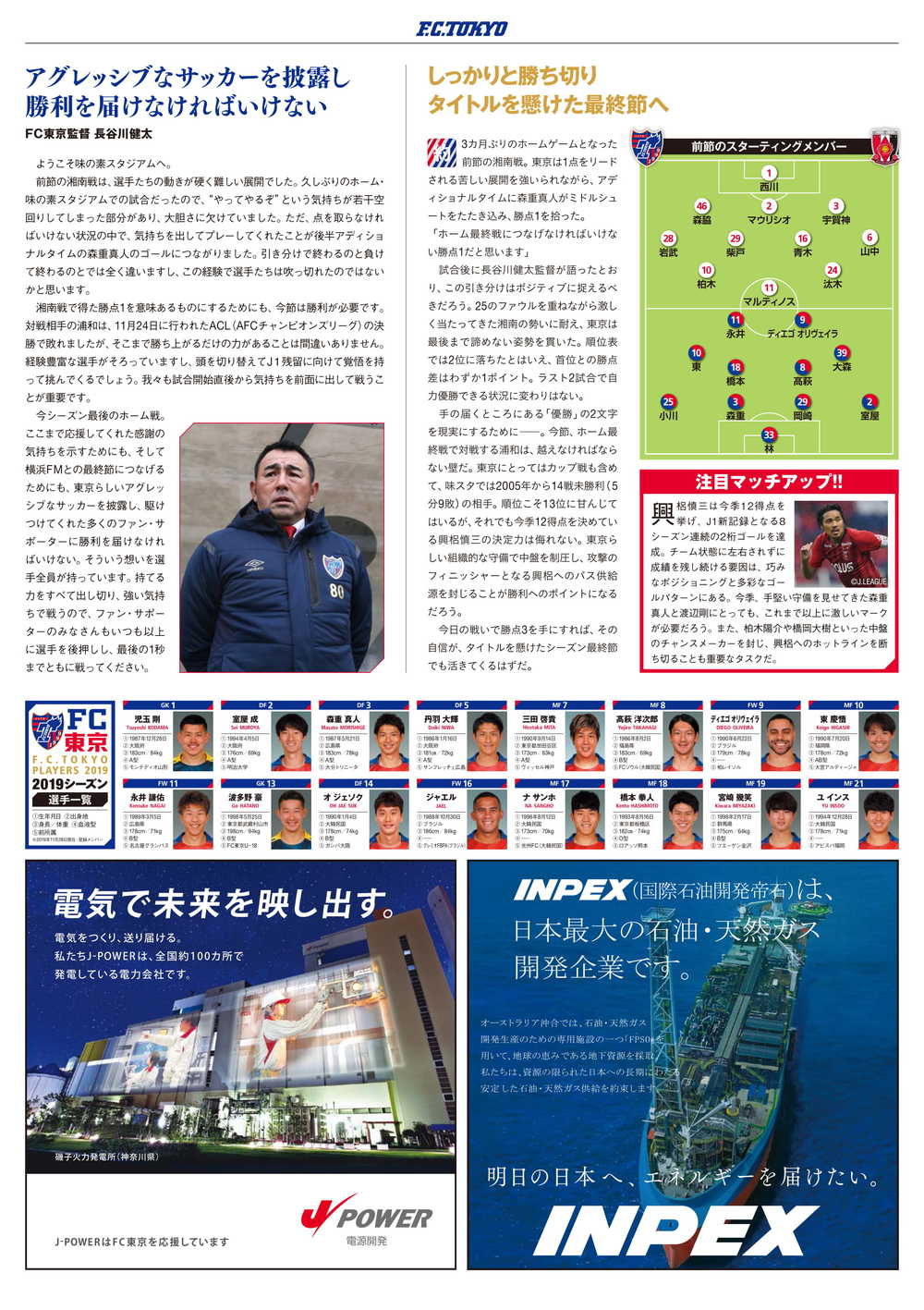 11/30(土)2019明治安田生命J1リーグ 第33節 vs 浦和レッズ(14:00キックオフ/味の素スタジアム)のオフィシャルマッチデープログラムについて、下記のとおりご案内いたします。