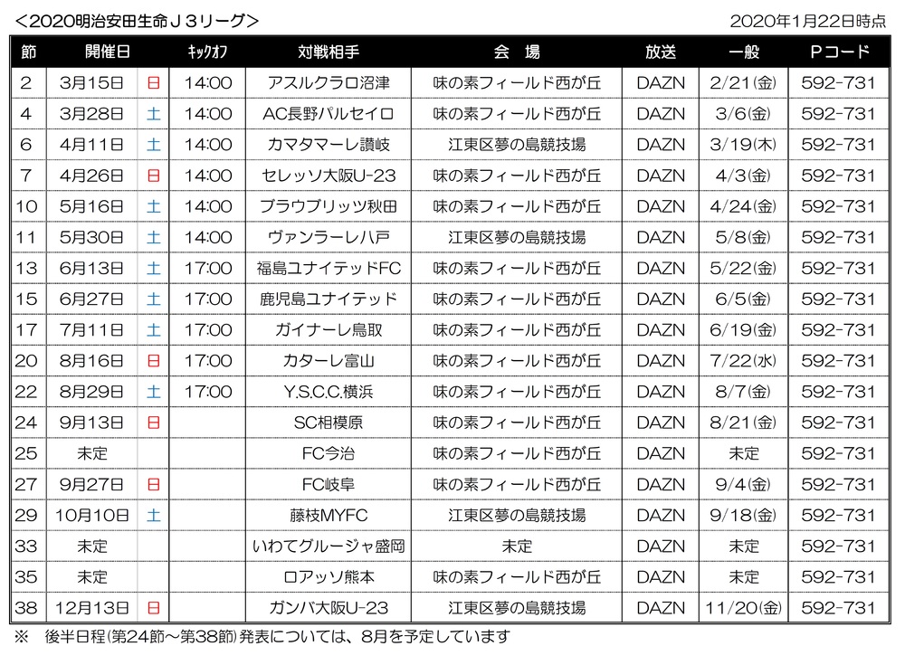 2020明治安田生命J3リーグホーム開幕カード決定!
