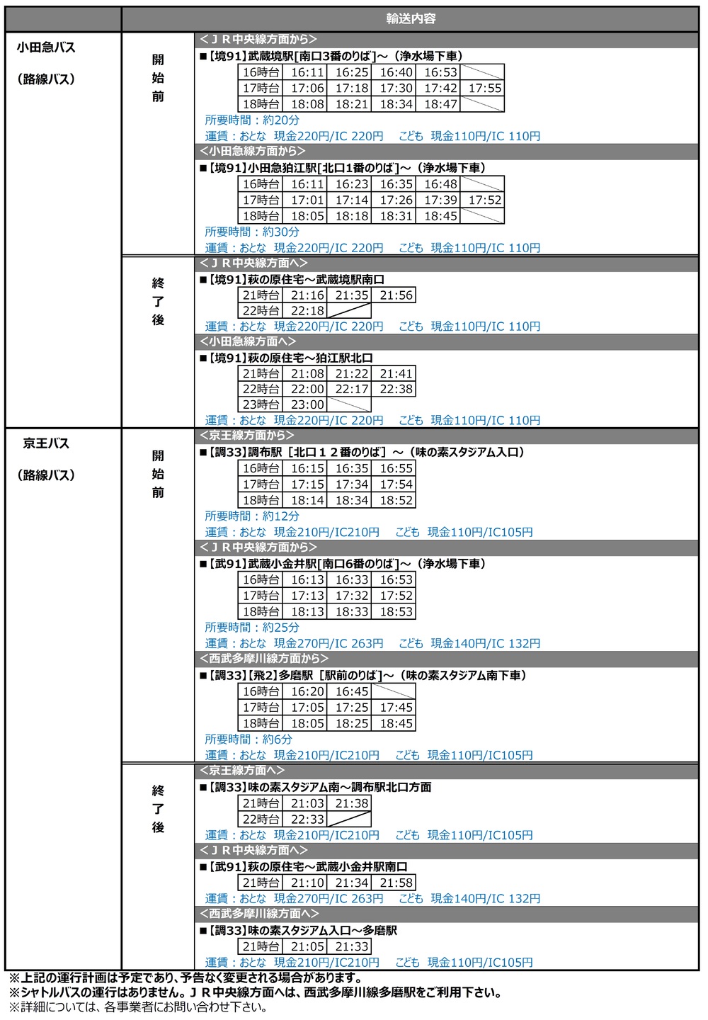 1/28(火)セレス・ネグロスFC戦 シャトルバス・路線バスの運行について