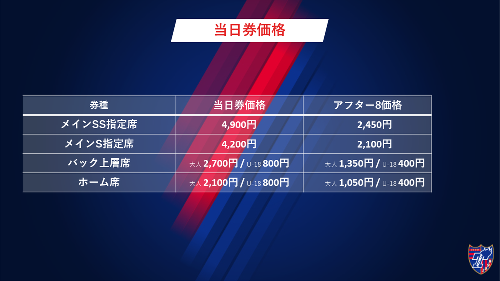 キックオフに間に合わない方でも、後半に間に合う方はぜひお得なアフター8チケットでご観戦ください!